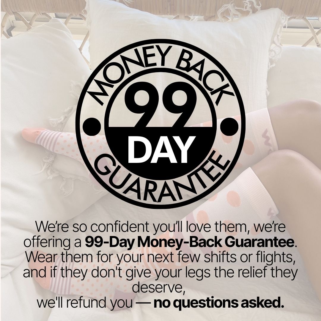 Not too tight to be uncomfortable during long shifts, but strong enough to prevent swelling and boost circulation. This is exactly what your legs need for 10+ hour days!